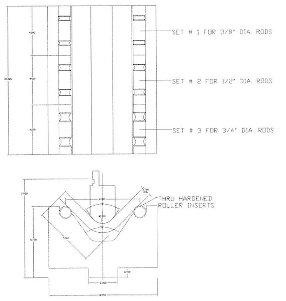 Rod forming die are custom tools, made to order based on rod diameter, bend angle, and inside radius requirements.