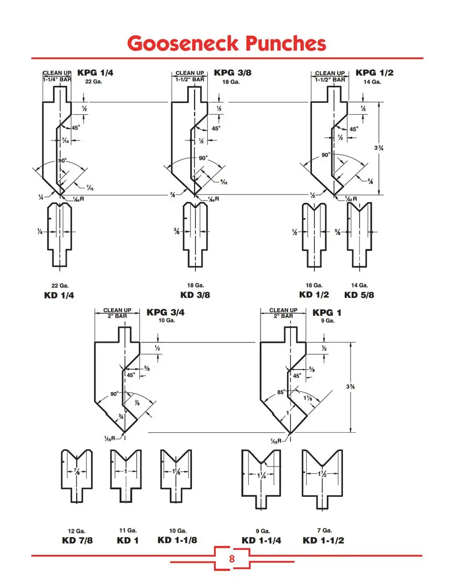 Special Gooseneck Punch modified KPG3/4 2'' wide 6'' tall net 48'' long