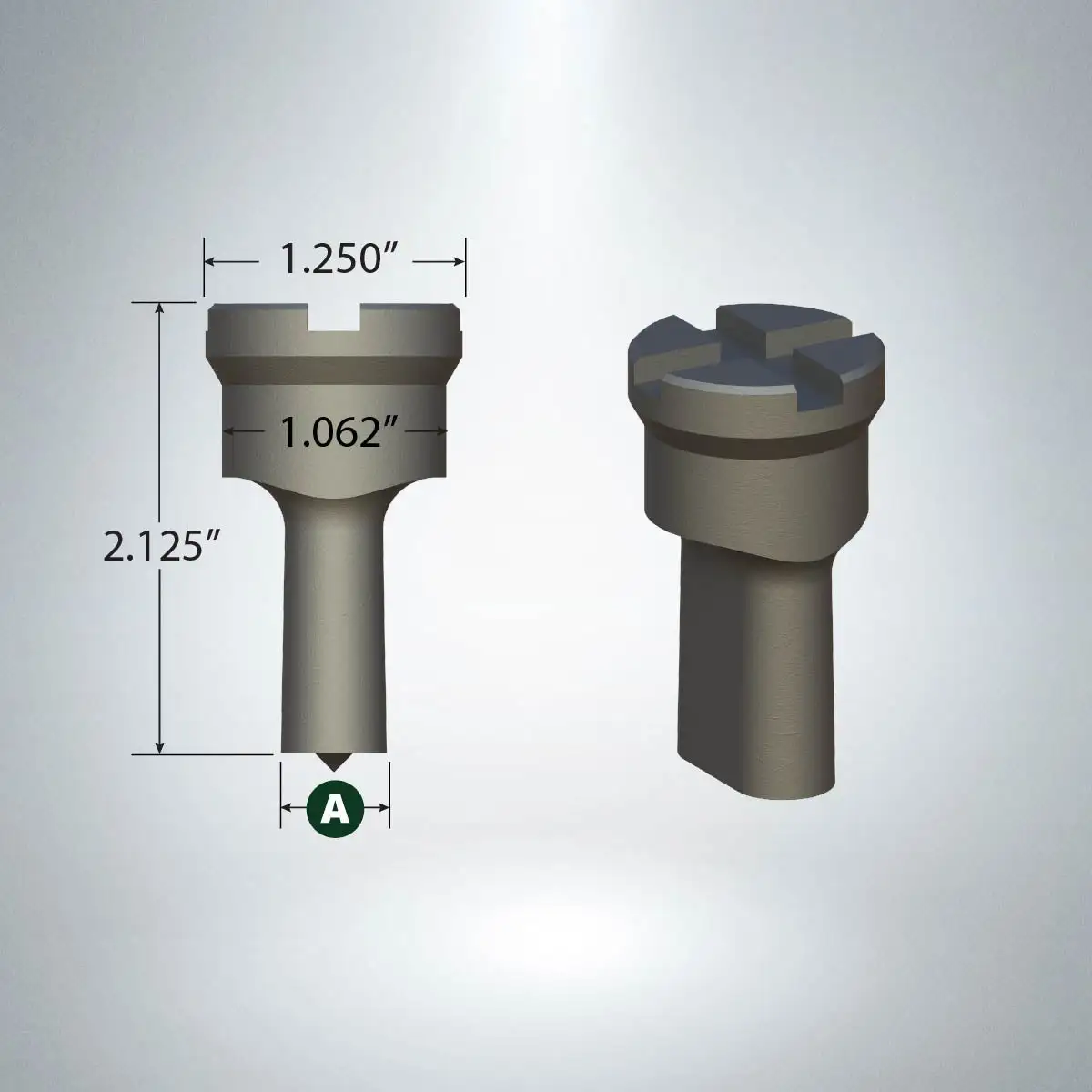 Dimensions: Head Diameter: 1.250" Body Diameter: 1.062" Overall Length: 2.125"