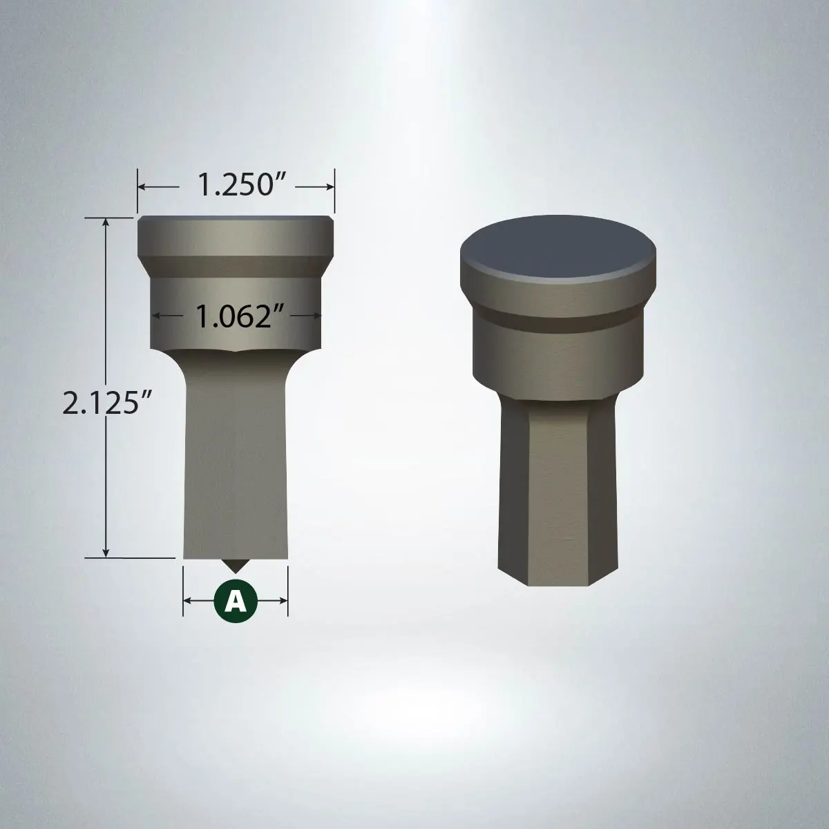 Punches are supplied with no keyway. All sizes listed are in stock. Contact us for custom sizes not listed. Commonly paired with F55 and F59 Hexagon Dies.