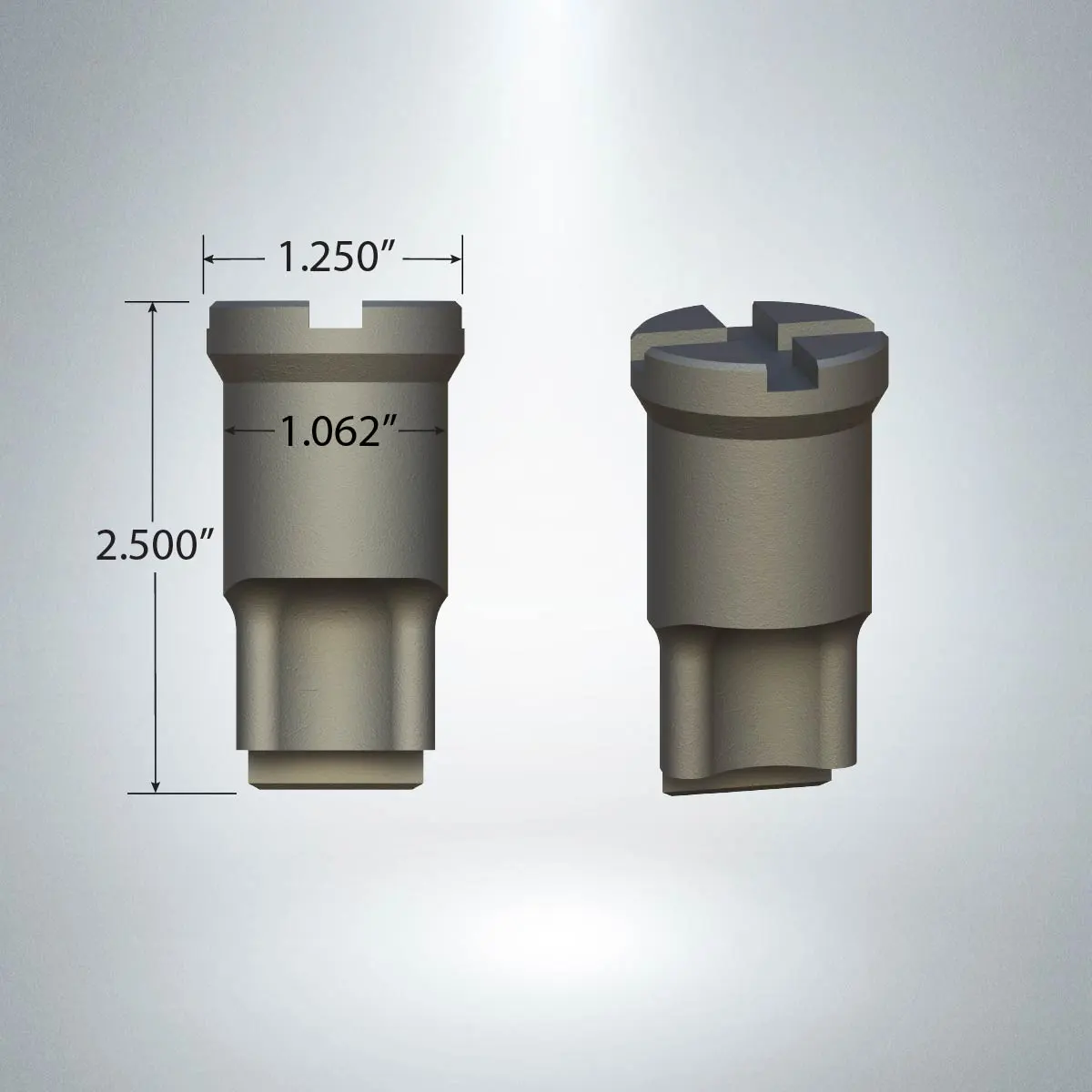 Dimensions: Head Diameter: 1.250" Body Diameter: 1.062" Overall Length: 2.500"