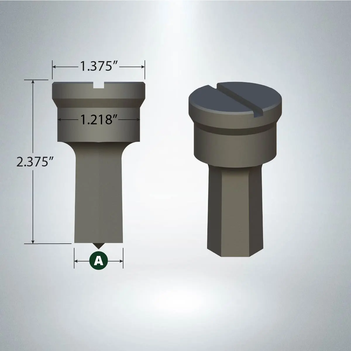 Punches are supplied with a 4mm wide x 2.5mm deep single keyway. Use 4mm x 4mm Keystock to align punches in the machine. All sizes listed ship within 24 hours. Contact us for custom sizes not listed. Commonly paired with F55 and F59 Hexagon Dies.
