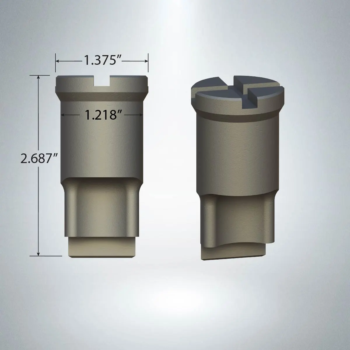 Dimensions: Head Diameter: 1.375" Body Diameter: 1.218" Overall Length: 2.687"