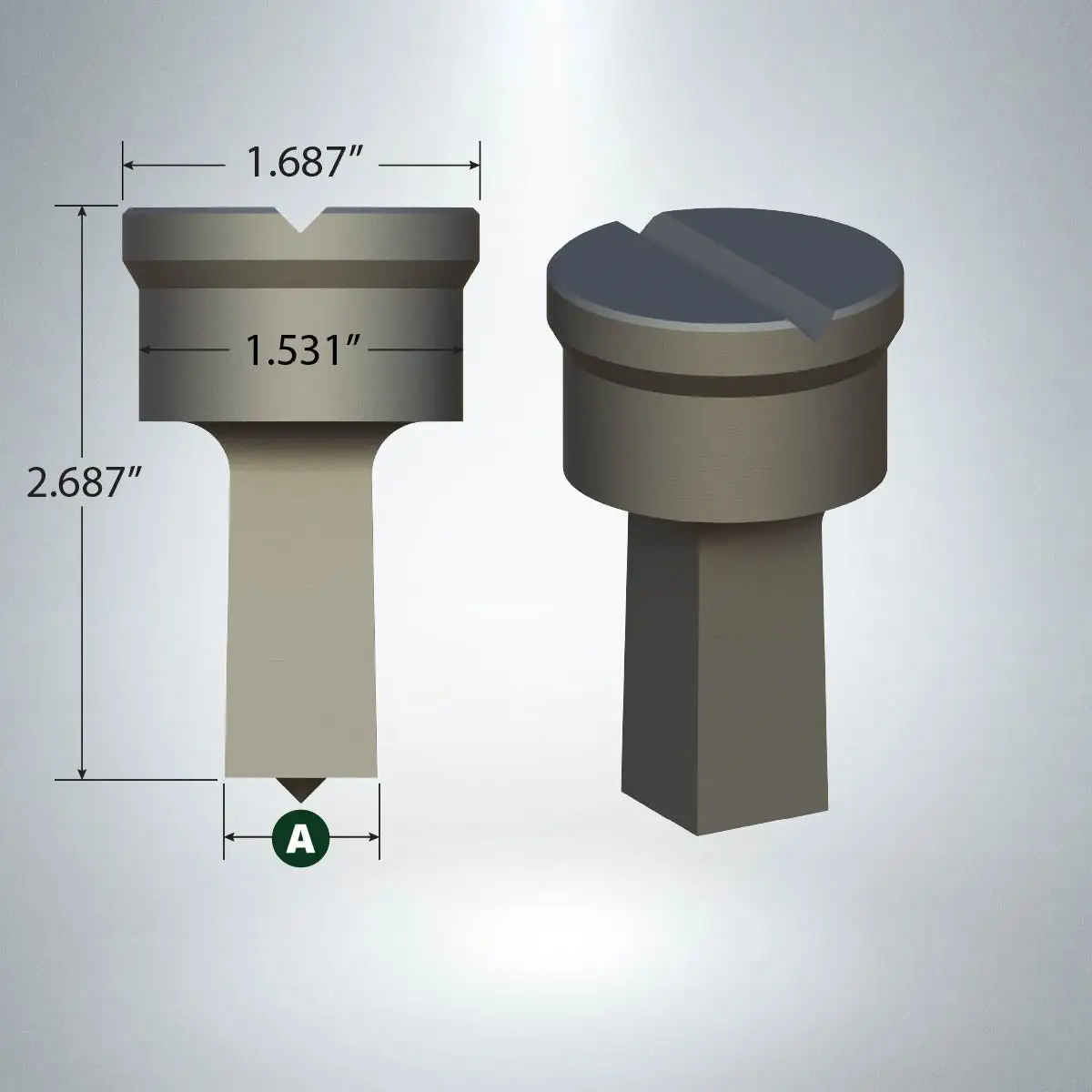Punches are supplied with a single v-groove. Use 1/8" Round x 1-5/8" Long Keystock to align punches in the machine. All sizes listed ship within 24 hours. Contact us for custom sizes not listed. Commonly paired with F62 Square Dies.