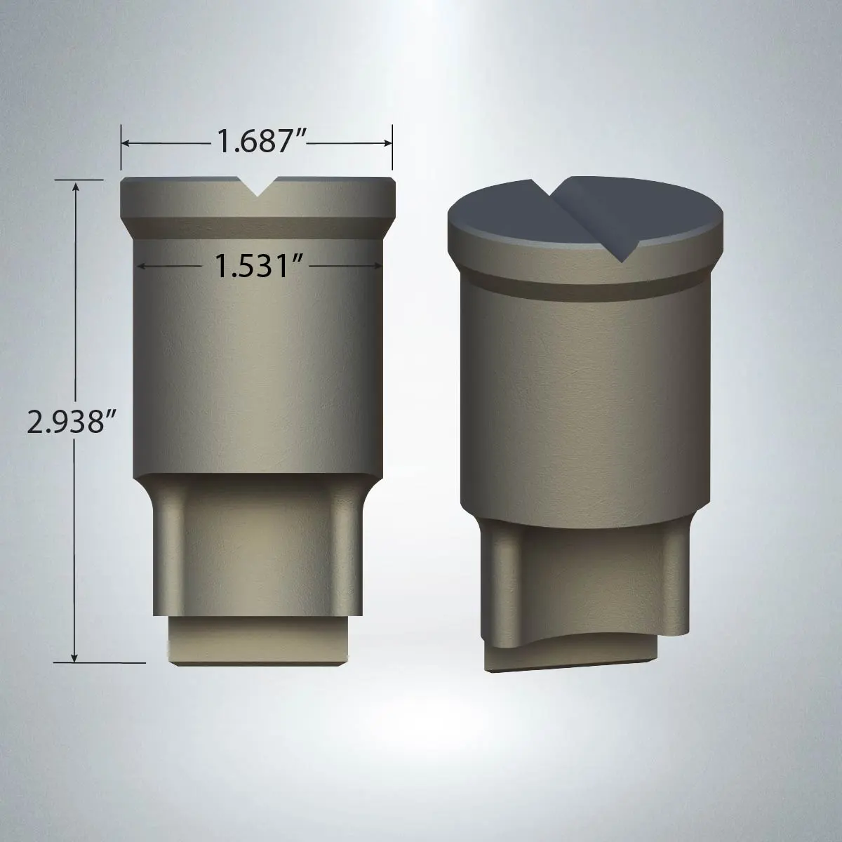 Dimensions: Head Diameter: 1.687" Body Diameter: 1.531" Overall Length: 2.938"