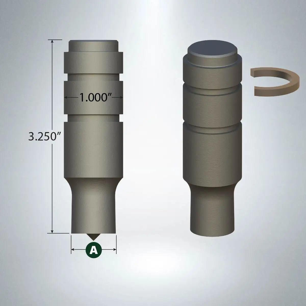Punches are sold with Snap Ring. All sizes listed are in stock. Contact us for custom sizes not listed. Commonly paired with F59 and F155 Round Dies.