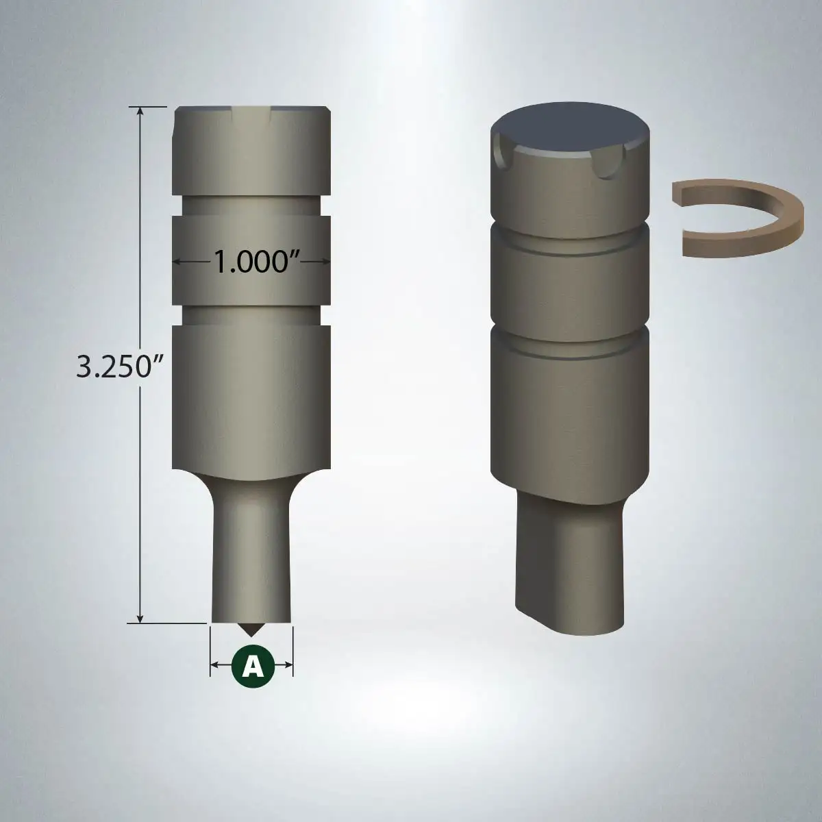 Punches are sold with Snap Ring. All sizes listed are in stock. Contact us for custom sizes not listed. Commonly paired with F59 and F155 Oblong Dies.