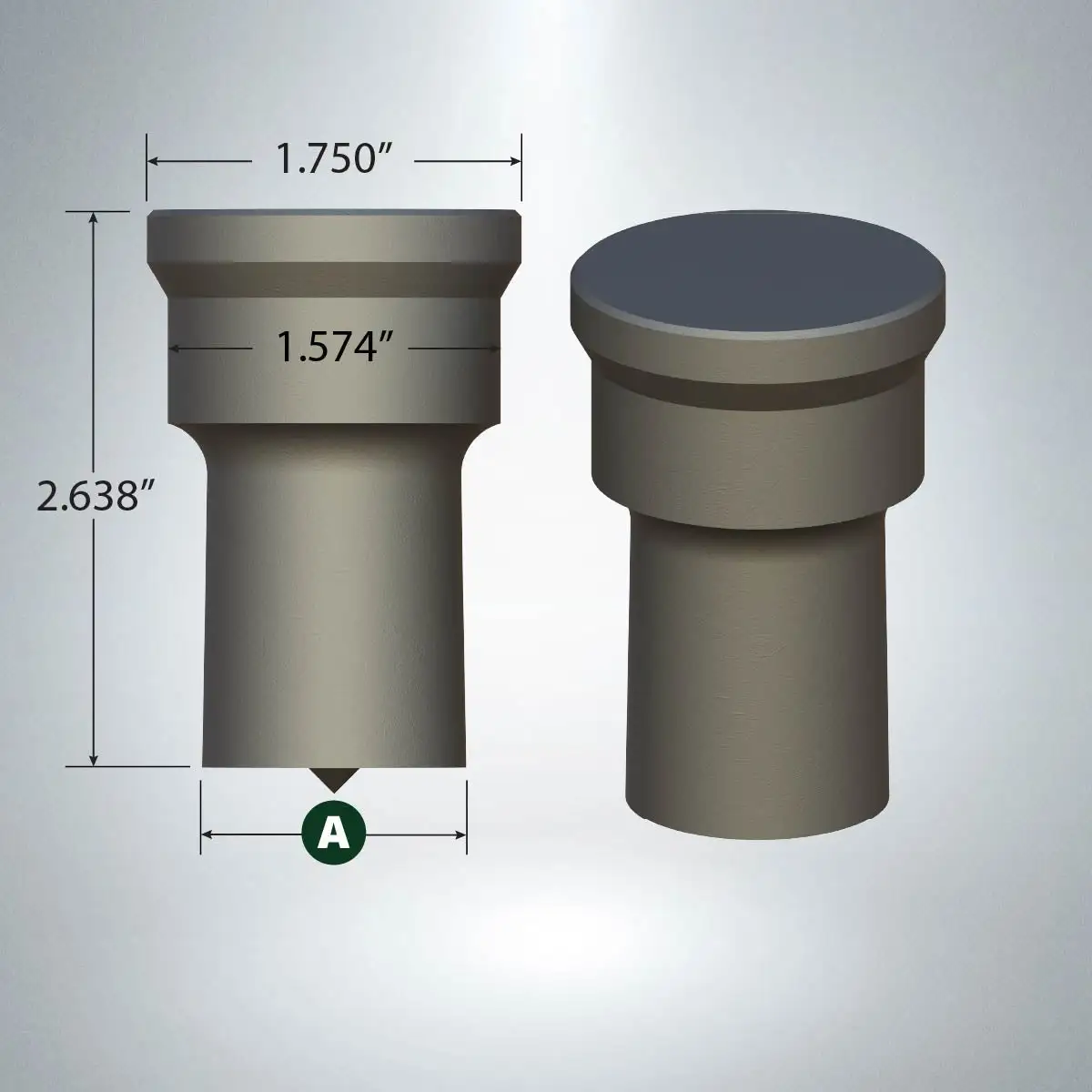Dimensions: Head Diameter: 1.750" Body Diameter: 1.574" Overall Length: 2.638"
