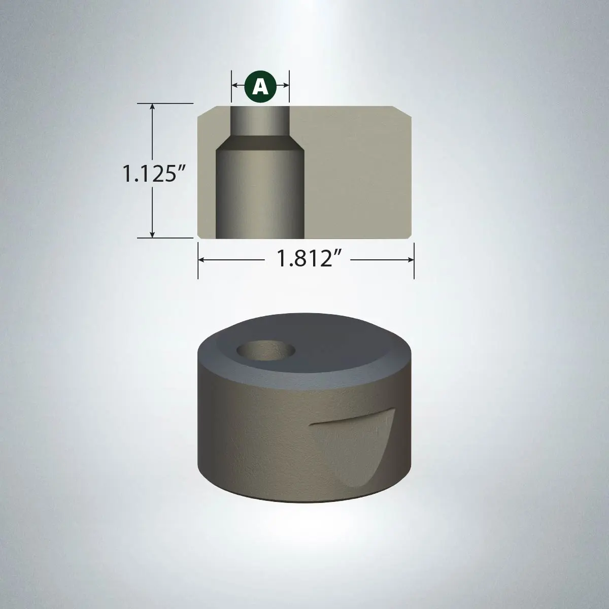 Stock Round Offset Dies are supplied with one locator notch. All sizes listed are in stock. Contact us for custom sizes not listed. Commonly paired with F12, F16 and F20 Round Punches.