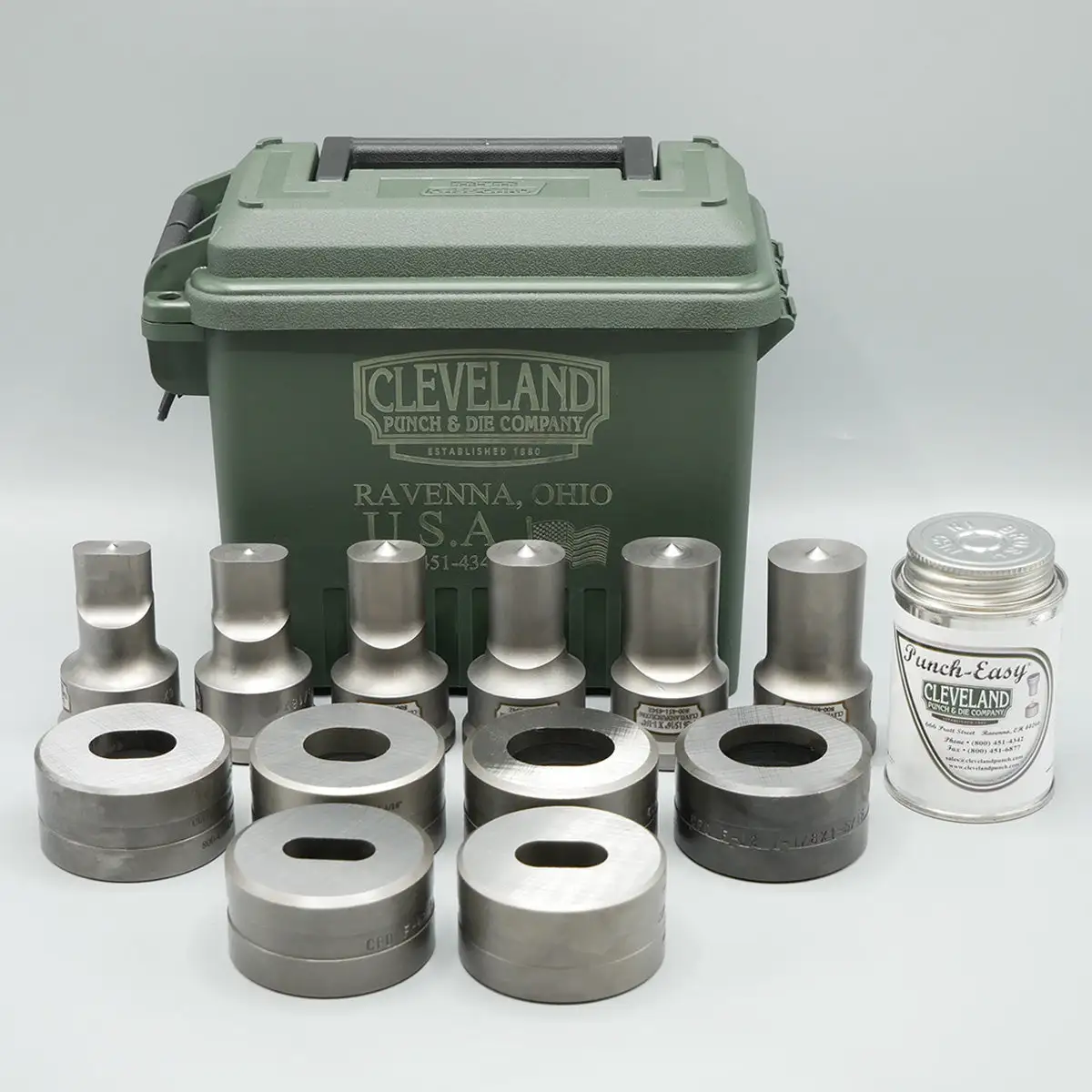 Punch & Die Sets are a great way to stock your punch and die inventory. This Set is in stock and includes 6 F26 Oblong Punches, 6 F62 Oblong Dies, Half Pint of Punch-Easy®, and Toolbox.